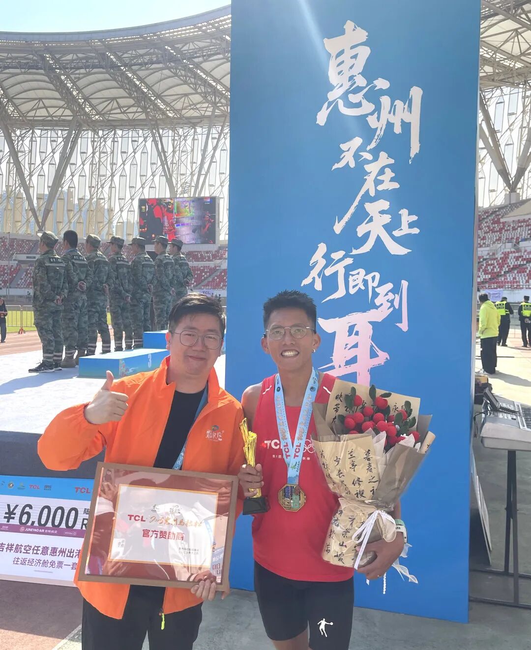 劲家庄为2025惠州全马冠军陈华威点赞