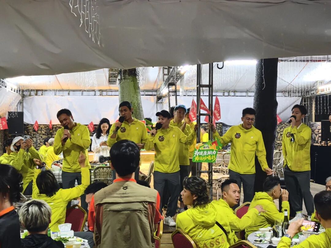 当《朋友之光》的旋律响起,看台上的劲家庄员工们用齐声合唱回应着熟悉的旋律。