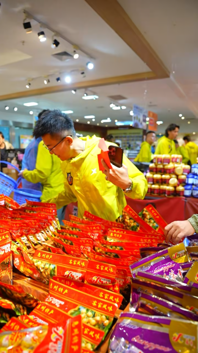 车间参观结束,大家移步劲家庄产品展区。展厅内准备了限时夺宝趣味小游戏,大家兴致勃勃寻找“隐藏红包”,挑选心仪的健康好物,现场热闹又温馨。